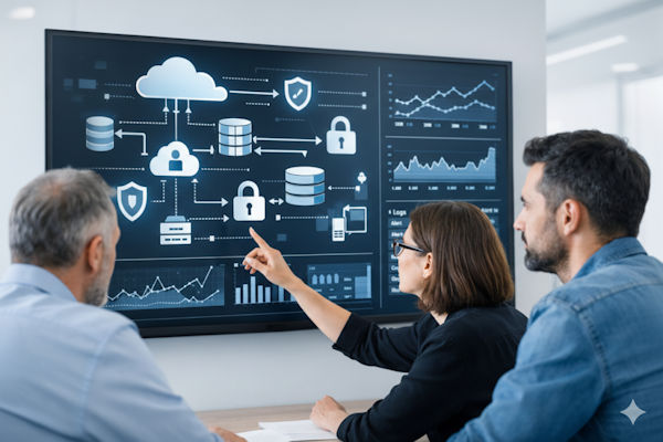 Sicherheit ist keine nachgelagerte Prüfung, sondern ein Designprinzip. Cloud Security umfasst sowohl technische Maßnahmen (z. B. Identity- und Access-Modelle, Netzwerksegmentierung, Secrets-Management) als auch organisatorische Aspekte (Policies, Prozesse, Rollenmodelle). Besonders wichtig sind: